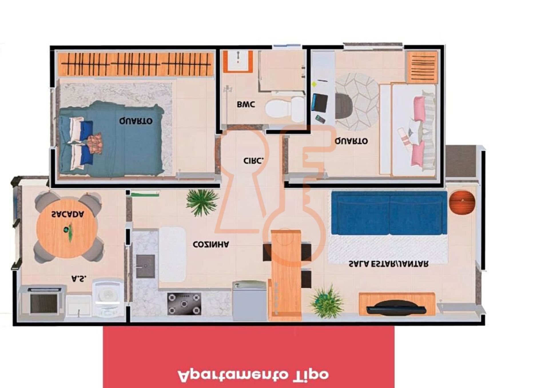 2 Dormitórios1 VagaGaragem Coberta1 Cozinha1 Sala de jantar1 Sala de estar1 Área de serviço